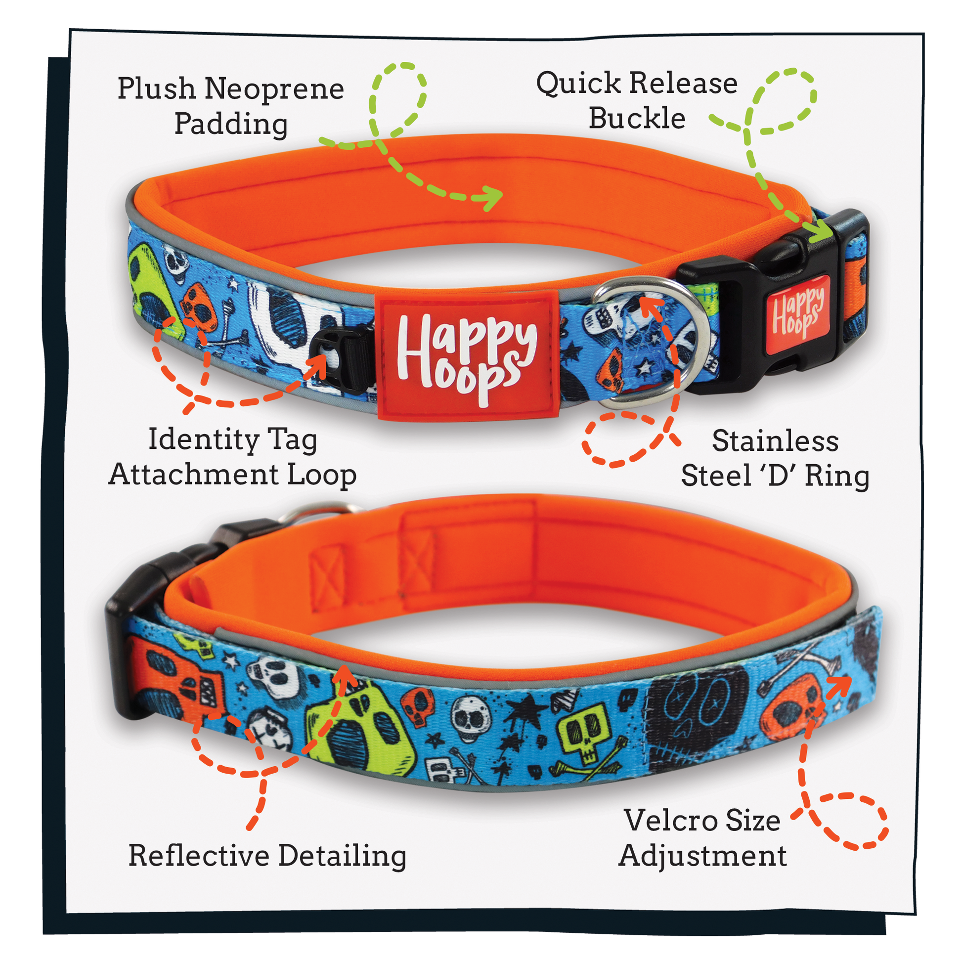The Happy Hoops Dog Collar combines vibrant design with high-performance comfort and safety - so your dog can strut their stuff in style.